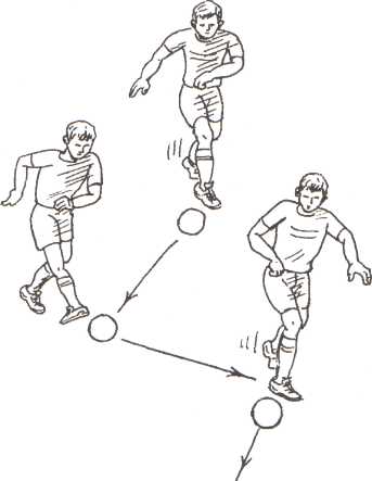 «Өмірге қуаныш –бұл денсаулықтың белгісі ғана емес, аурудан сауығудың тиімді жолы.» Халық даналығы Міндеті: қарсыласқа арқасымен тұрып алдауды үйрету.Мазмұны: А қақпаға арқасымен тұрған В-ға пас береді. Бұрылып, алдау әрекетін орындаған соң доппен қозғалып, жерлете А-ға пас береді. А допты ыңғайлап алып қақпаға соққы жасайды. А мен В орындарымен ауысады және С мен D да сол әрекеттерді орындайды.Тапсырманы орындауға қойылатын талаптар: Пасты дәл беру. Ойыншысын назардан тыс қалдырмау. Алдау әрекеттерін орындаған кездегі дене қимылдарының үйлесімділігі. Соққыны дәл жасау. |