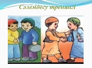 I. Ұйымдастыру кезеңі. «Сәлемдесу» тренингі арқылы оқушылар бір-біріне жақсы тілек айта отырып, амандасады.