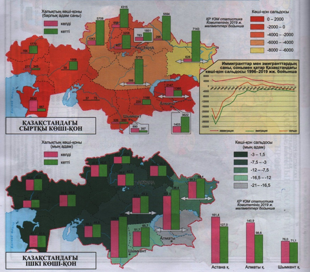 2топ. Карта мен оқулықтағы 51-52 мәтінді пайдаланып, Қазақстан Республикасының көші-қон жағдайын сипаттандар. Қазақстан халқының көші-қонының негізгі бағыттарын атап, себеп-салдарын түсіндеріндер