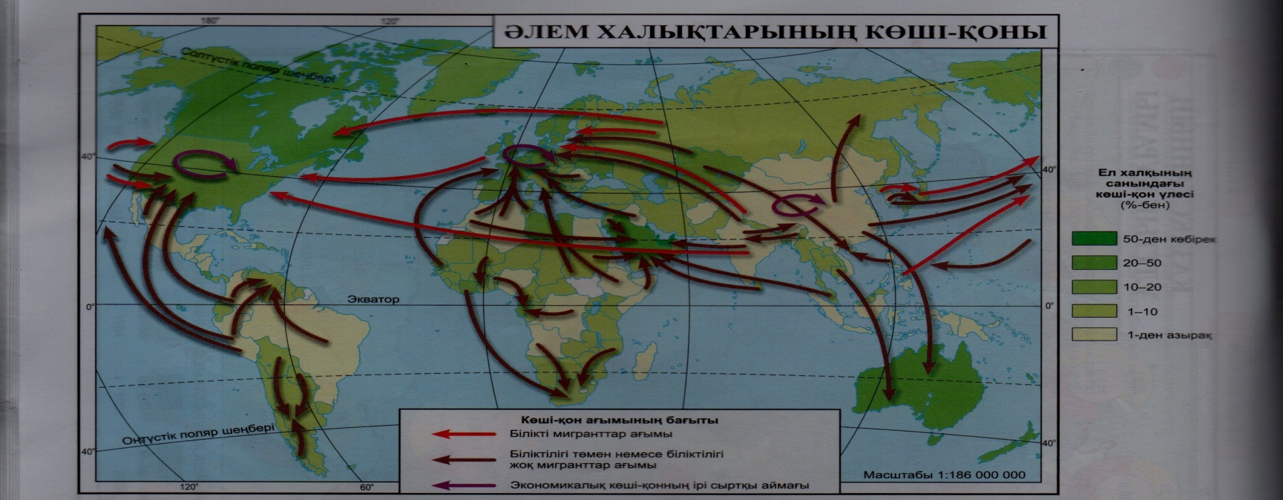 1топ. Дүние жүзінің көші-қон картасының көмегімен миграция бағытарын анықтаңыз, себеп-салдарын түсіндіріңіз