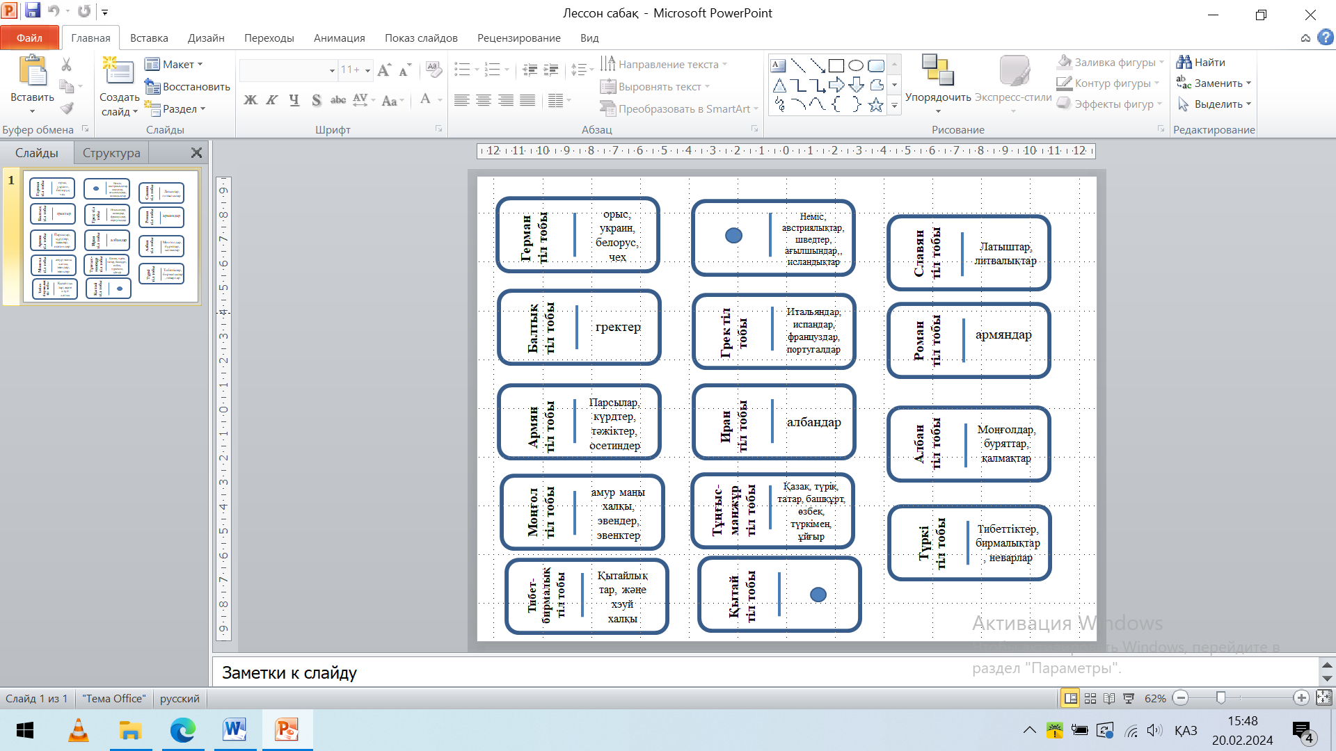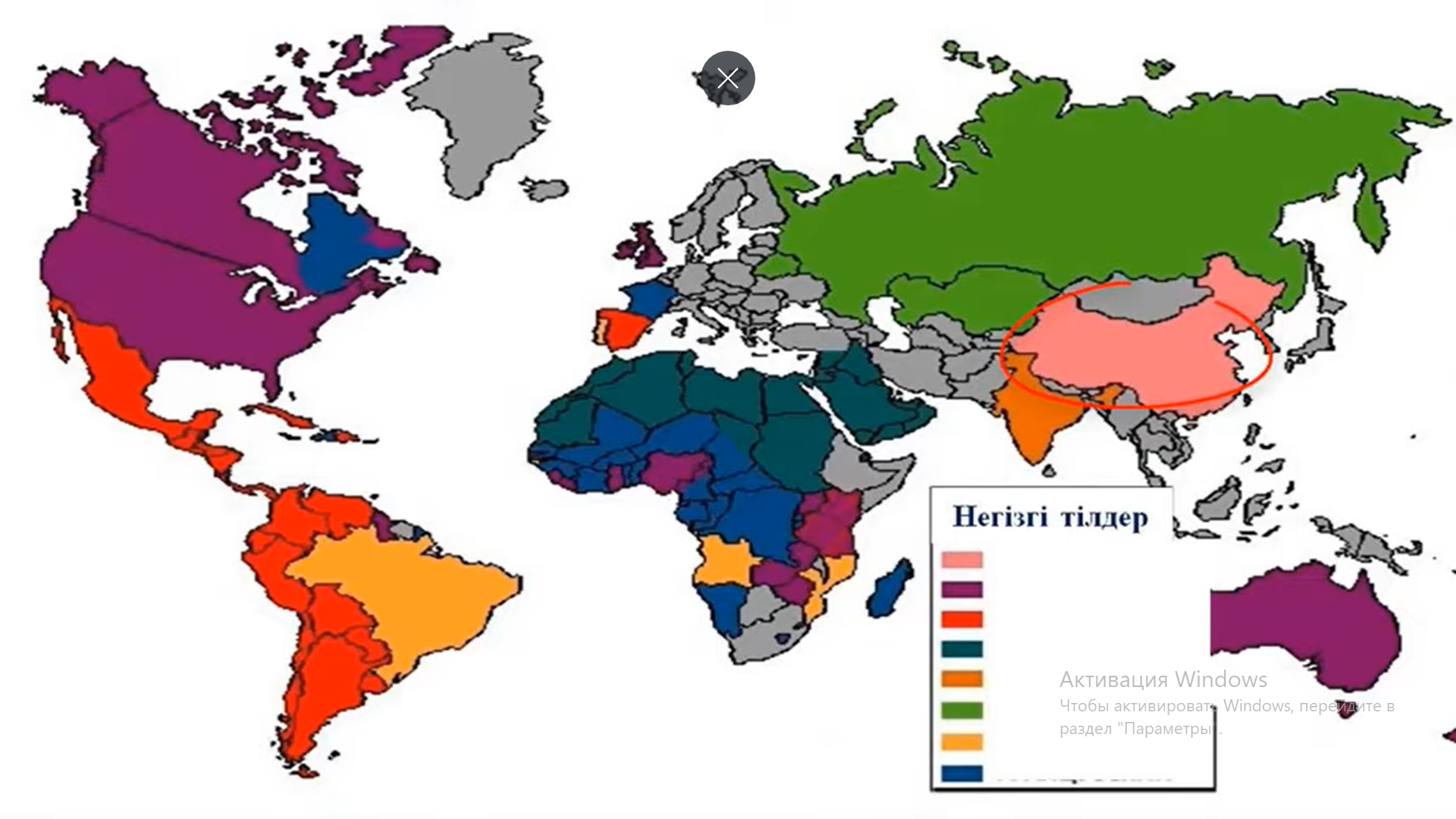 2-тапсырма бойынша оқушылар атлас картаны қолданып дүниежүзіндегі тіл топтарына талдау жасайды: