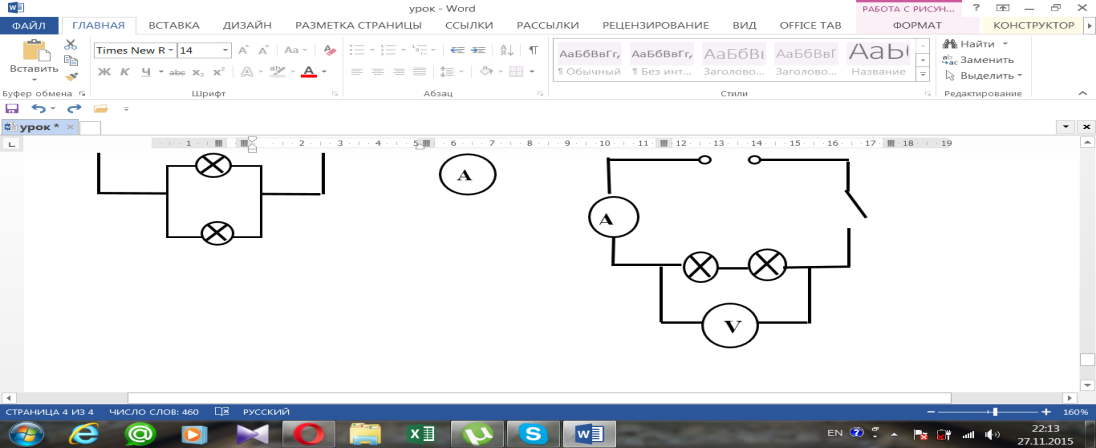 ( (ii) Бұл тізбектегі шамдар өзара ________________ жалғанған. 2-тапсырма.Жұптық жұмыс (I).Берілген тізбекке вольтметрді үш түрлі тәсілмен жалғаудың сызбаларын сызыңдар және кернеулерді өлшеңдер.