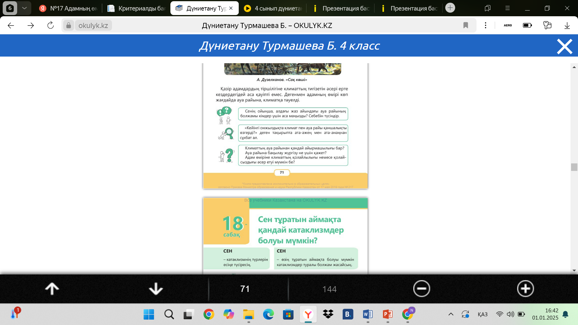 Дүниетану 17 сабақ Адамның өміріне климаттың әсері қандай? 4 сынып