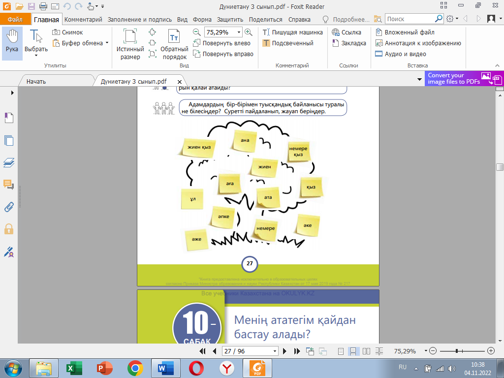 . Оқушылар тапсырмаларды кезекпен оқиды, жауабын табады. фотосуреттерге қарап, туыстық атауларын жазады,