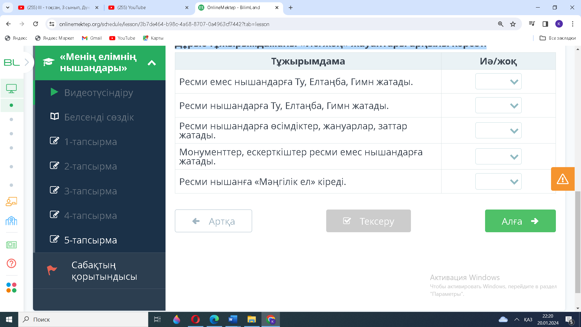 3.3.5.1 Қазақстанның бейресми рәміздерінің мәнін түсіндіру («Алтын адам», «Бәйтерек» монументі, «Мәңгілік Ел» қақпасы) |