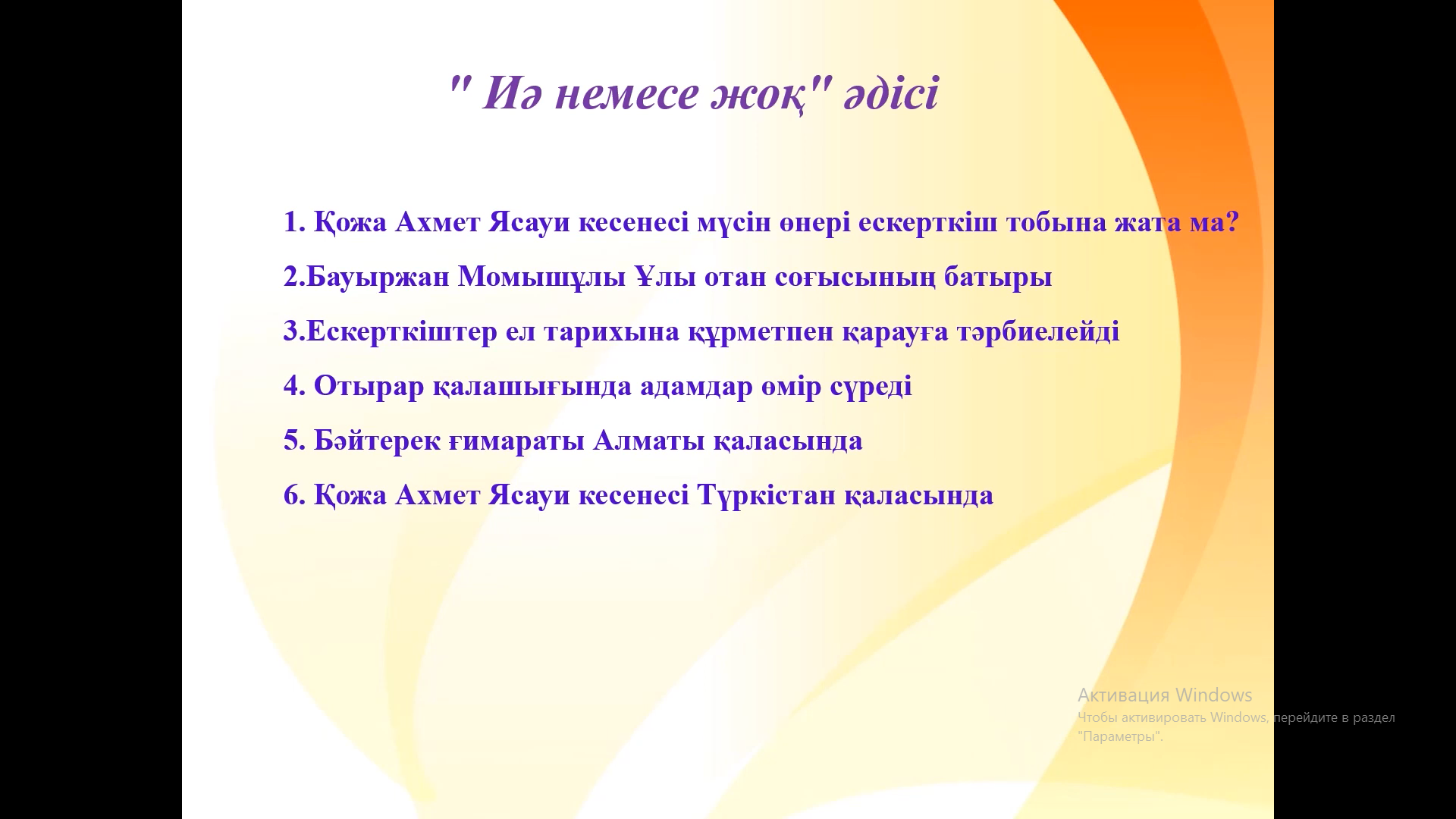 ЕББҚЕО: тақырыпты тыңдайды. Сұрақтарға мұғалімнің сүйемелдеуімен жауап береді.