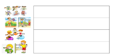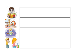 Жауабы: жеміс — жидектер, сүт тағамдары, дәнді — дақылдар, ет тағамдары, кепкен жемістер. Жауабы: дене жаттығулары, жүзу, жүгіру, доп ойнау, секіру Жауабы: жеке бас гигиенасы, оқулықтардың ұқыптылығы, киім реттілігі, үй тазалығы, ыдыс -аяқтың таза болуы. Жұптасып жұмыс жасайды.