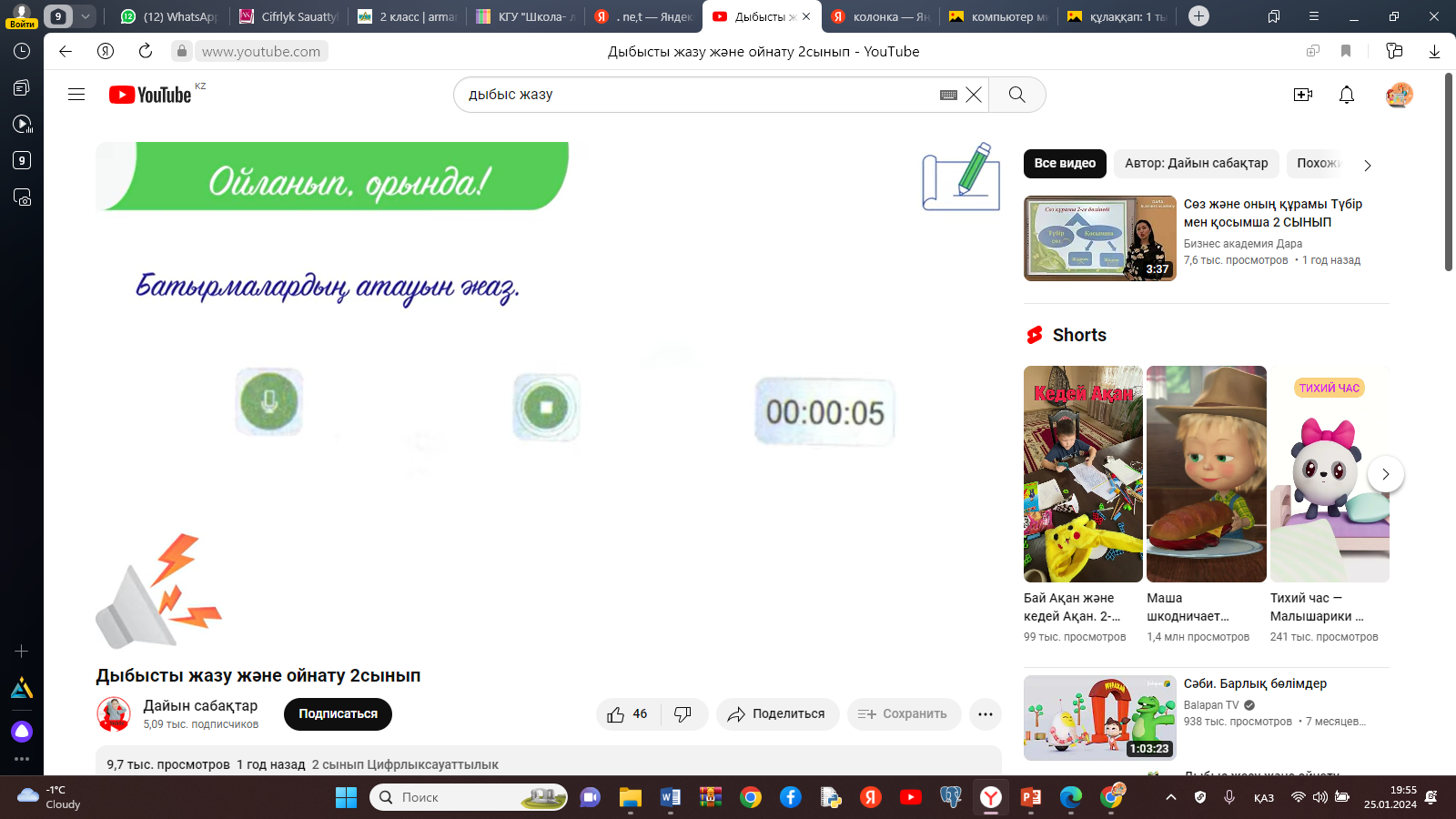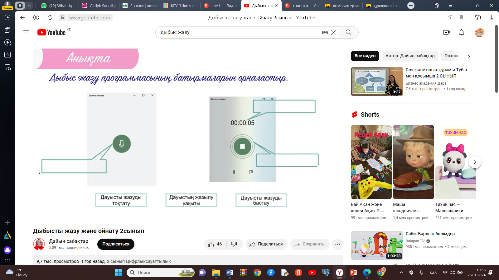 Компьютерде дыбыс жазатын программалармен танысады |