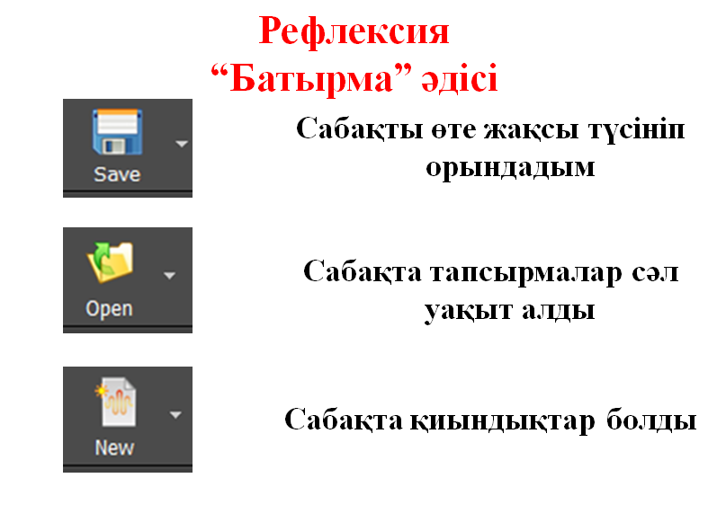 Оқушылар берілген сұрақтарға жауап береді. Үйге берілген тапсырманы дәптерлеріне жазып алады. Оқушылар сабақ басында тақырыпты қаншалықты түсінгендерін «Батырма» әдісі арқылы көрсетеді. |