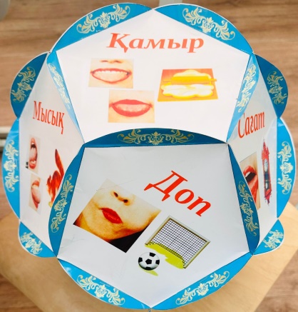 «Артикуляциялық жаттығу»додокаэдр арқылы арикуляциялық жаттығуды жасап көреді. Соңында өз ойларымен бөліседі.