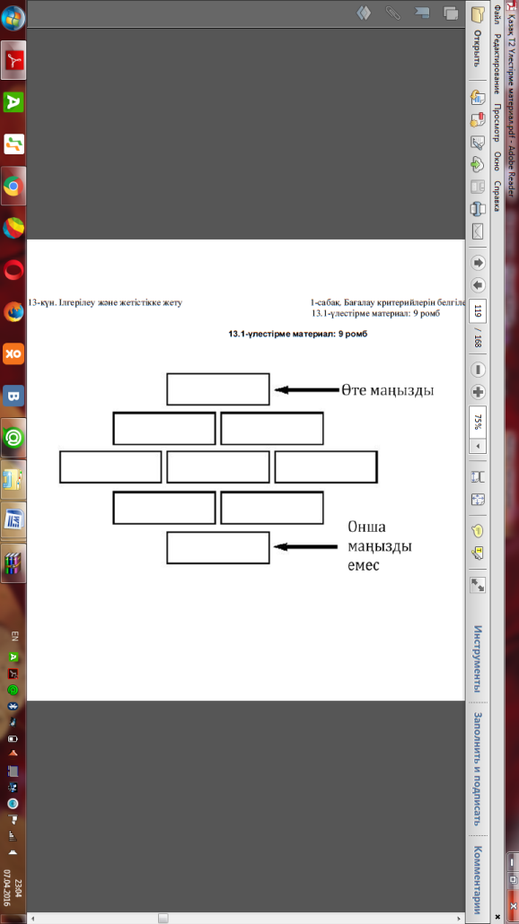 оқиға Ойтүрткі «Сұқтанба құр сорайған қарасына» деген сөз қандай мағынаны білдіреді? Бидайдың сипаты арқылы берілген адамның мінез-құлқын қара сөзбен жазыңдар. 1-тапсырма 1)9 ромб әдісі бойынша шығармадағы автор МАҢЫЗДЫ және ОНША МАҢЫЗДЫ ЕМЕС деп санаған мәселелерді анықта. Жұбыңа анықталған мәселелердің неліктен маңызды және маңызды емес екенін түсіндір. Мысалы: данышпан,.. - МАҢЫЗДЫ; тәкаппарлық, жаман .... - ОНША МАҢЫЗДЫ ЕМЕС. Анықталған маңызды аспектілер арқылы автор бейнесін сипатта.