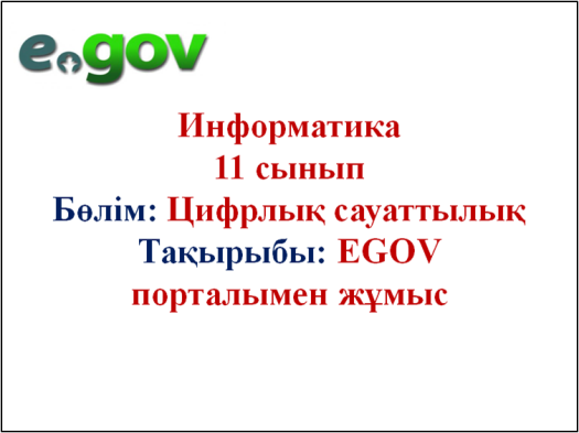 Сабақтың тақырыбы «Egov порталымен жұмыс»