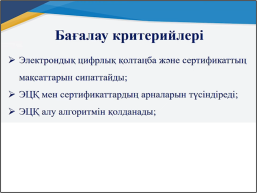 11.3.4.7 Электрондық цифрлық қолтаңбаның және сертификаттың мақсатын сипаттау 11.3.4.8 электронды үкімет порталында электрондық цифрлық қолтаңбаны қолдану |