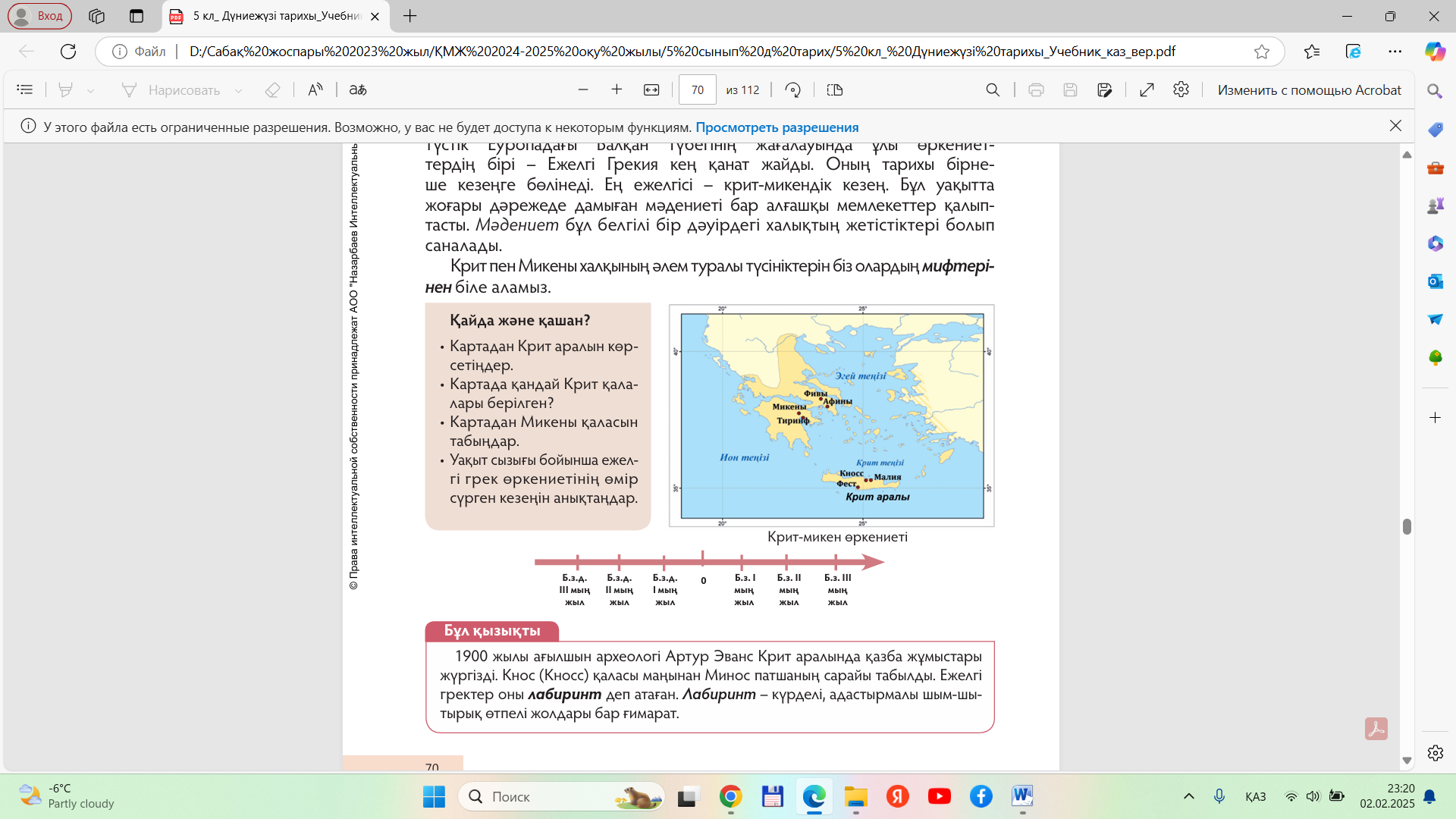 Дескриптор: - Оқушы мәтіндегі сөйлемді толықтырады - Ежелгі Грек елінің ерекшеліктерін анықтайды Дескриптор: -Картадан Крит аралын көрсетеді; -Картадан Микены қаласын көрсетеді Дескриптор: |