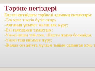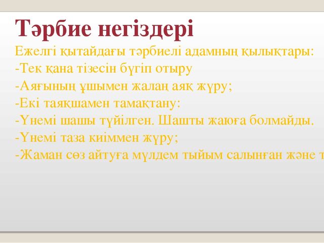 Өзгелердің мәдениетіне және көзқарастарына құрметпен қарау,өмір бойы оқуға дайын болу. |