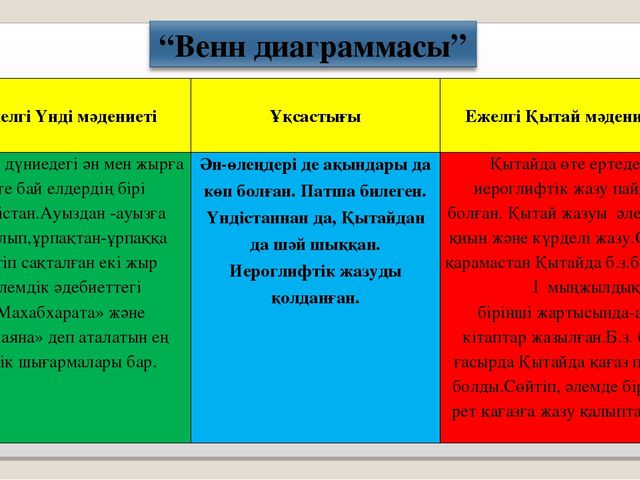 1.Оқушылар Ежелгі Қытайдағы ғылымдардың (арифметика, геометрия, астрономия, медицина)қалай пайда болып,дамығанын сипаттайды |