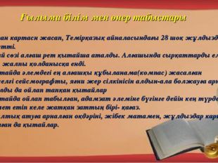 Қазақстан тарихы,әдебиет,жаратылыстану, еңбек. |