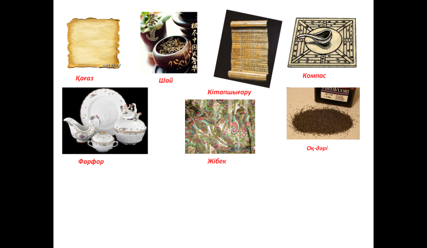 Қытайлықтардың өнер табыстары бейнеленген карточкаларды таратылып, келесі сұрақ қойылады.