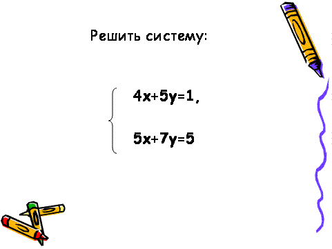 Дескриптор. Оқушылар: -теңдеулер жүйесін шешудің әдісін таңдайды; Жүйенің шешімін табады; жүйесінің шешімдері болатындай сандар жұбын табады. |