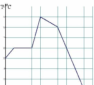 6. Суретте заттың Т температурасының t уақытқа тәуелділігі көрсетілген. Уақыттың қай бөлігінде температура тұрақты?. |