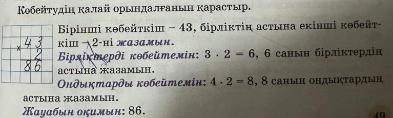 Екі таңбалы санды бір таңбалы санға жазбаша көбейту |