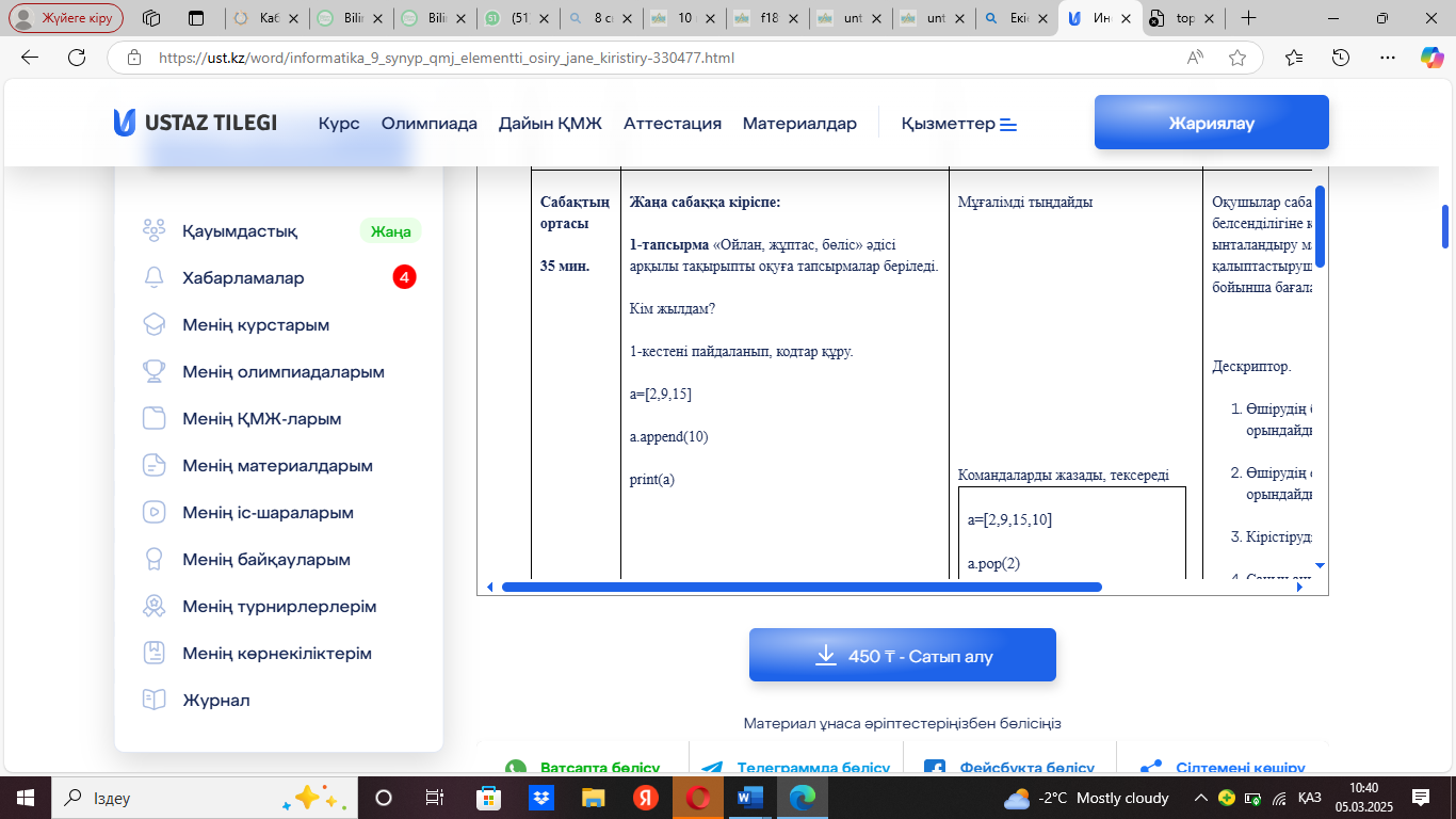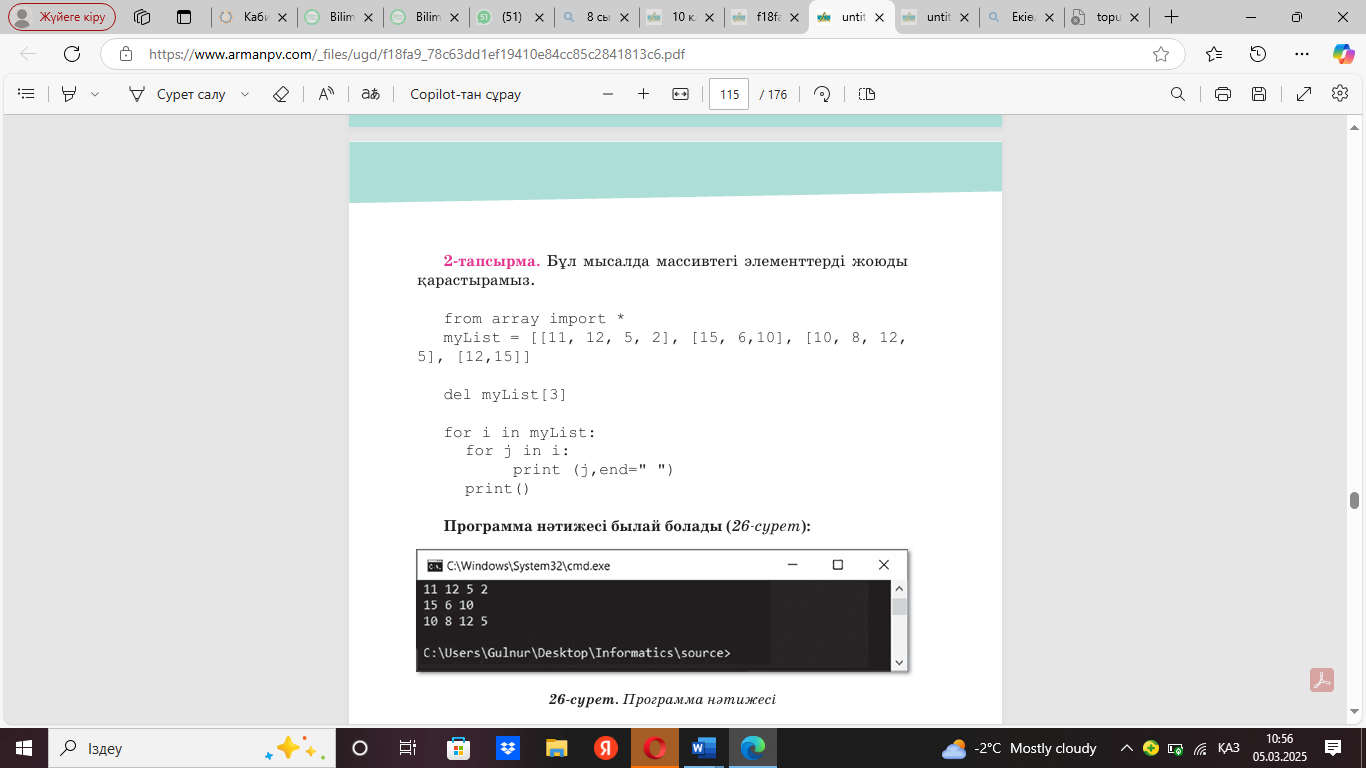 9.3.3.1 массивтерді пайдаланып Python бағдарламалау тілінде (python) бағдарламалар құру. |