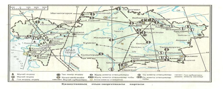 2. Картаны пайдаланып отын-энергетикалық ресурстардың шоғырланған аймағын анықтап, таралу заңдылықтарын түсіндіріңіз;