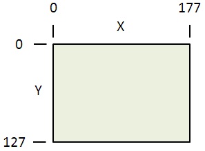Чтобы отобразить прямоугольник следует задать координаты "X" и "Y" левого верхнего угла прямоугольника, а также его "Ширину" и "Высоту".