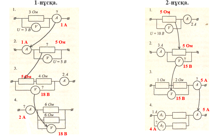 - электр тогының жұмысы, қуаты және ток көзінің ПӘК-ң формулаларын есептер шығаруда қолдану.