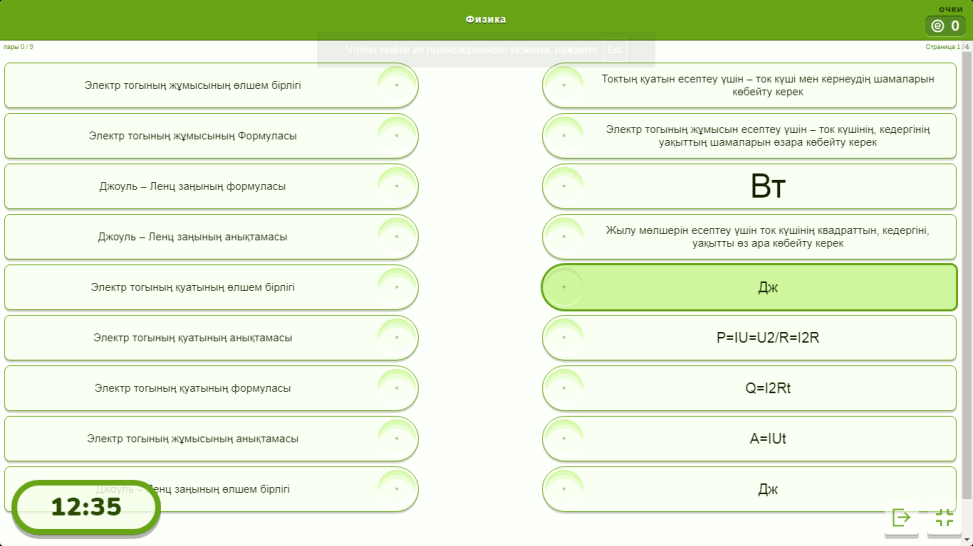 Электр тогының жұмысы, қуатты , Джоуль – Ленц заңы –тақтаның пердесін жылжытып отырып осы жауаппен сәйкестендіру керек.