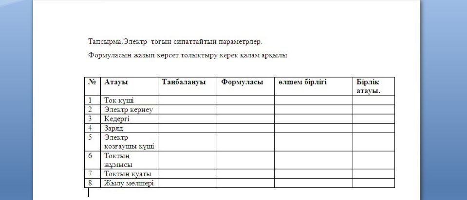 Токтың жұмысы мен қуаты және Джоуль-Ленц заңы формулаларын пайдаланып есептер шығаруға үйрету.
