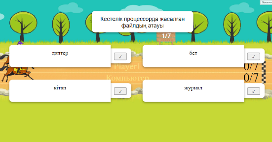 Экранға презентация қосылады. Жаңа сабақтың тақырыбы шығады. Кестеде үнемі бір ұяшық белсенді болады, ал белсенді ұяшық жиектері басқалардан ерекшеленіп тұрады: