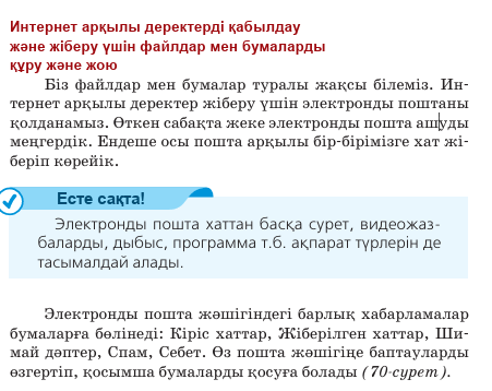 Электронды поштамен файлдарды қабылдау және жіберу 4 сынып
