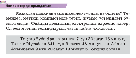 Дескриптор --топтаса онлайн платформада тапсырманы орындайды Дескриптор Сұрақтарға Жауап Береді Және Практикалықжұмысты орындайды Дескриптор. Төмендегі мәтінді компьютерде теріп, жұмыс үстеліндегі бумаға сақтайды. Файлды досының электронды адресіне жібереді. Дескриптор -Сұраққа жауап береді |