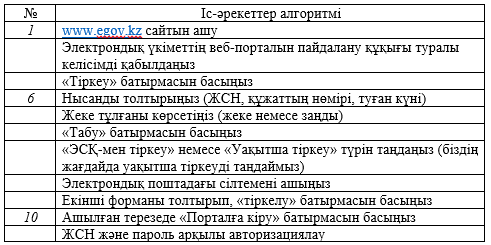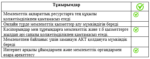 - Электронды үкімет порталына тіркеле алады. |