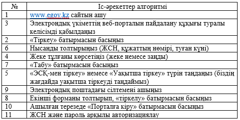Тапсырма 2. Көрген бейне материал бойынша электронды үкімет порталына тіркелудің дұрыс алгоритмін дұрыс ретімет көрсетіңіз.