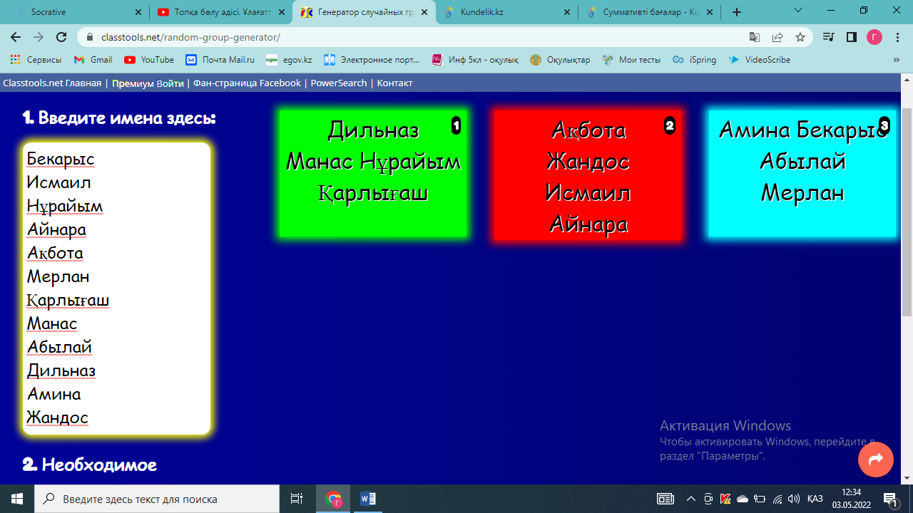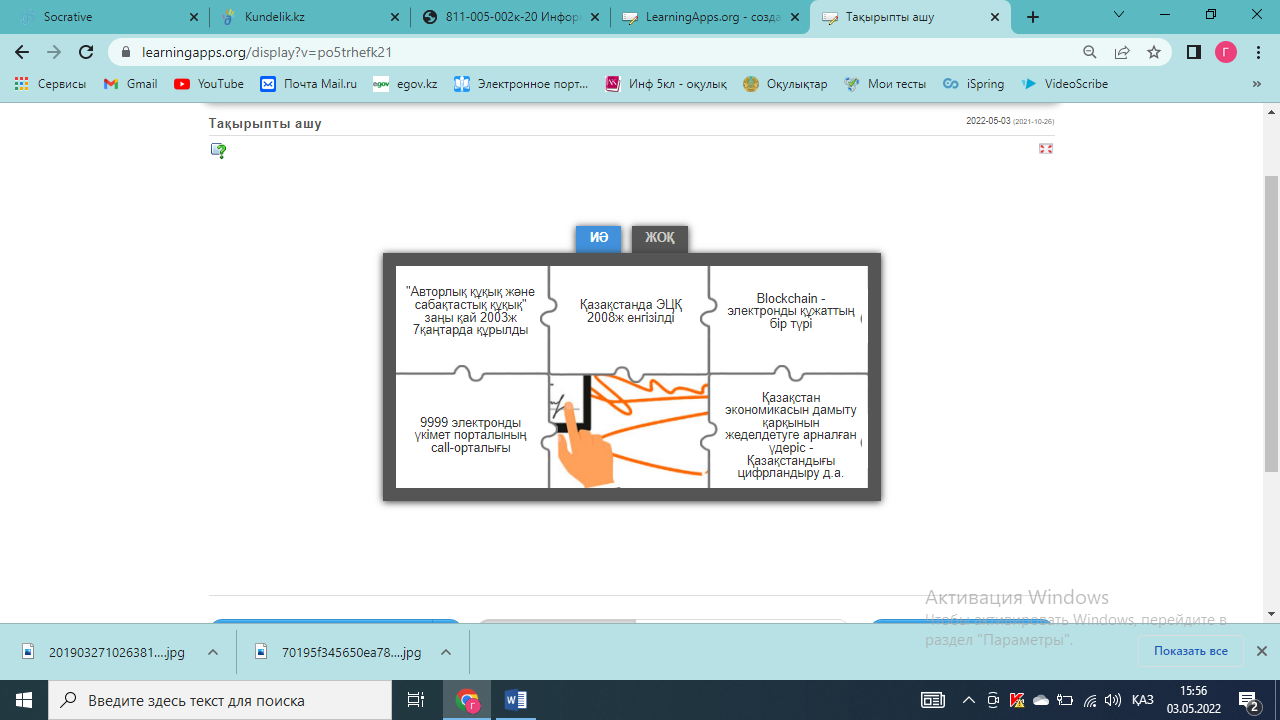 Өткен сабақты пысықтау. https://b.socrative.com/ платформасы арқылы еске түсіремін. https://learningapps.org/ платформасы арқылы тақырыпты ашып алу.
