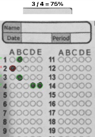 ZipGrad программасы арқыла оқушылар 4 тест сұрағына парақшадағы дөңгелекті бояу арқылы жауап береді және олардың жауабы ZipGrad арқылы сканерленіп алынады.