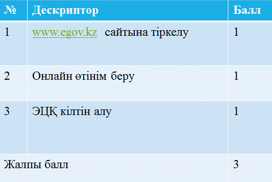 /сайтқа тіркелі -1 бал Онлайн өтінім беру-1бал/ |