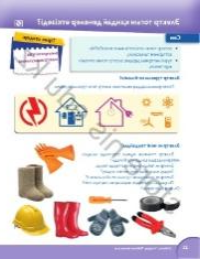 «Жедел сұрақтар» әдісі. 1.Электр тогы деген не? 2.Неліктен электр зарядтары тізбек бойымен қозғалады? 3. Электрик қандай киімдер таңдайды? ЕБҚ Үйде әкең электр тогын жөндегенде қолына не киеді? Не үшін? 1-Тапсырма Электрөткізгіштер мен электроқшаулағыштар туралы айту Тәжірибе 1.Екі полиэтилен пленканы аламыз, партаның үстіне (бір-біріне параллель) орналастырамыз, олардың үстінен бір рет қолымызбен сипаймыз. Пленкаларды ұшынан ұстап көтереміз, арасын алшақ ұстаймыз және жайлап жақындатамыз да, олардың арасындағы құбылысты байқаймыз. ЕҚБ: Үй жағдайында электр тогын пайдаланғанда қандай ережелерді сақтау керек? Қауіпсіздік ережесін жаса 2-Тапсырма «Топтастыру» әдісі
