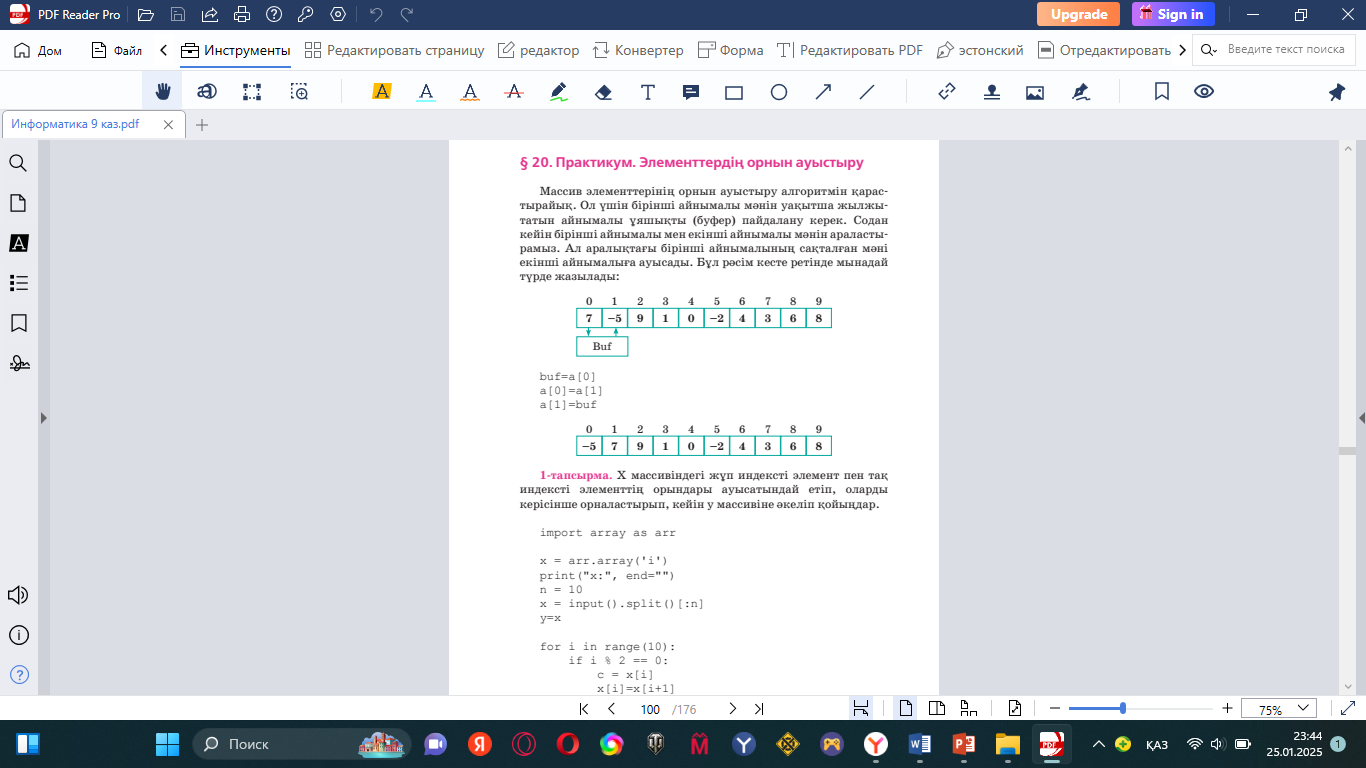 9.3.3.1- бірөлшемді массивтерді пайдаланып Python программалау тілінде программаларды жасау |