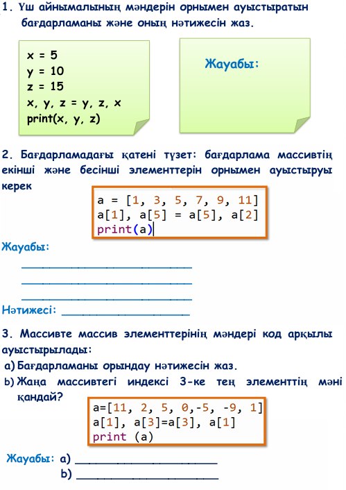 Элементтердің орнын ауыстыру ҚМЖ Информатика