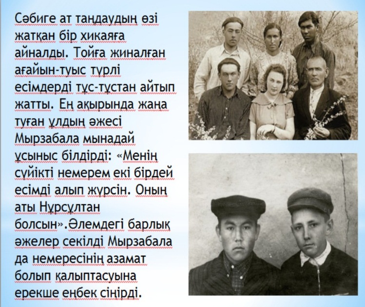 10-сұрақ. – Елбасымызға Нұрсұлтан деп есім берген кім?