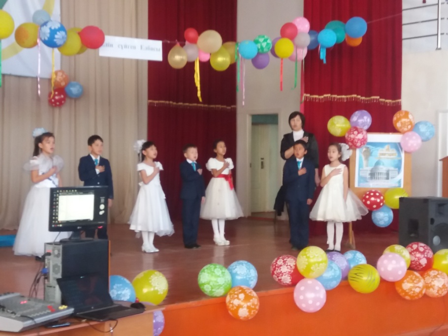 Гимнің тұр көгіңде шырқалып. (Қазақстан Республикасының Мемлекеттік Гимні орындалады)