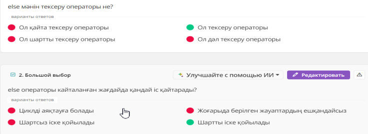5-тапсырма. Жұптық жұмыс https://quizizz.com/admin/quiz/65c910748a30bd573ca5a4da/else-ciklin-baskharu?fromSearch=true&source=