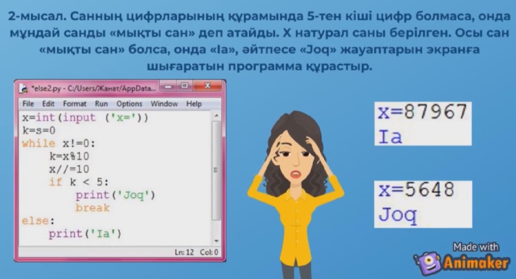 Дескриптор: - Операторлар дың қызметін алады -айнымалыны біледі -Else операторын меңгерген