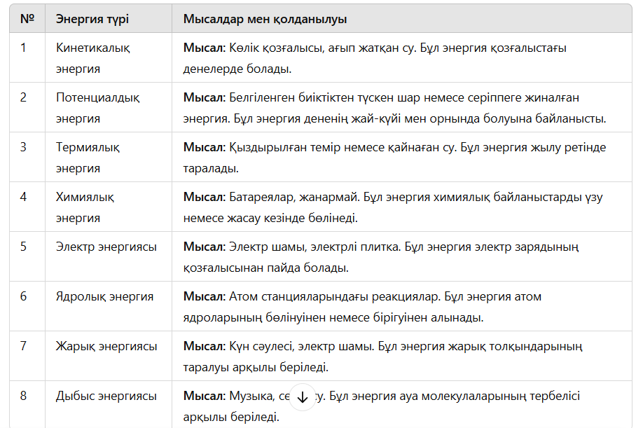 Энергия түрлері мен көздері |