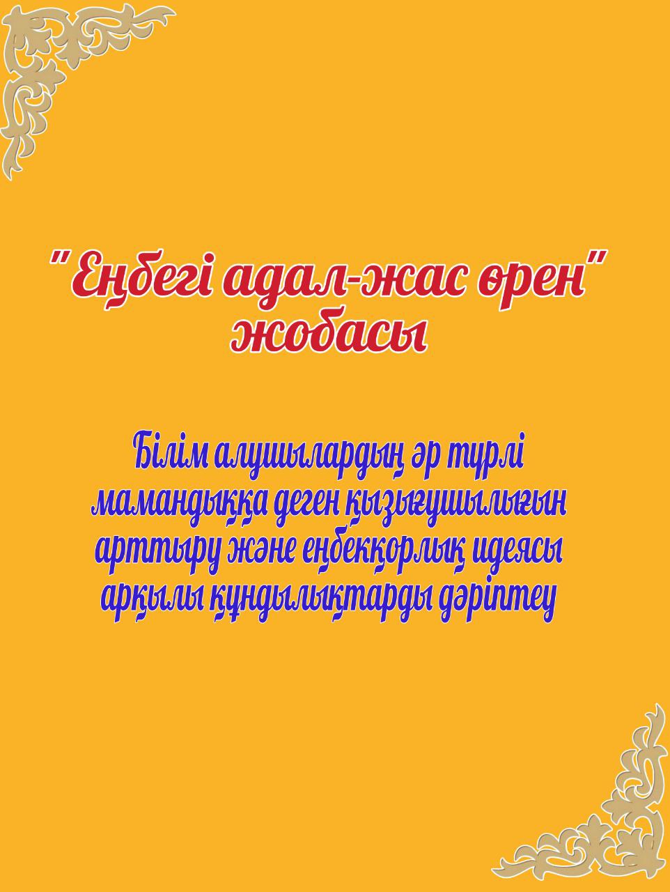 Еңбегі адал жас өрен жобасы бойынша жоспары 2024-2025 оқу жылы