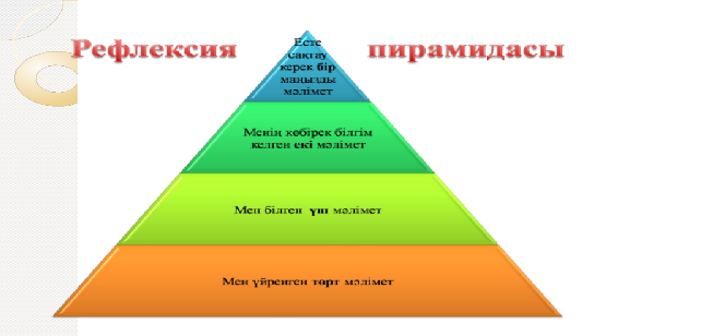 Кері байланыс. «Еңбек пирамидасы»рефлекция Оқушылар стикерге пікірін жазып,тақтаға жапсырады. |