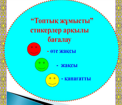 табады. Оқушылар арасында топтық бағалау жүргезеді. |
